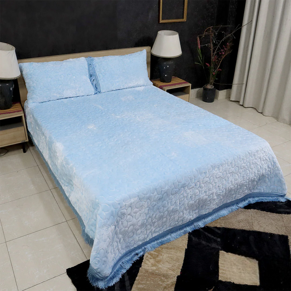 Deluxe Mink 3 Pieces Bed Set- Blue