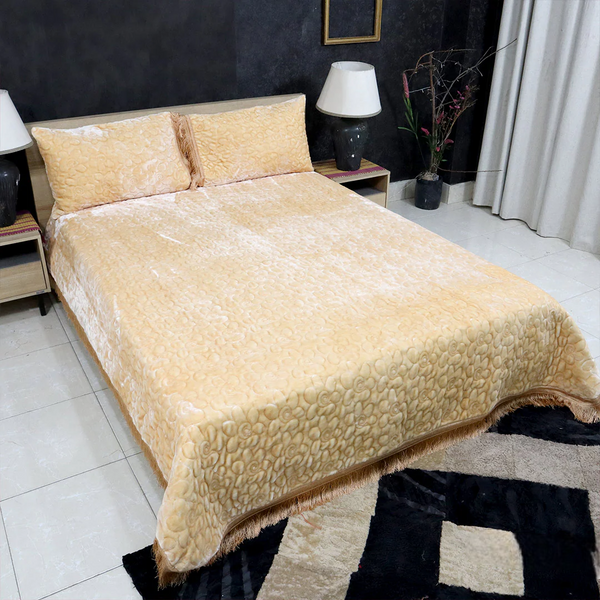 Deluxe Mink 3 Pieces Bed Set-Peach