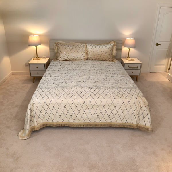 Ruby Silk 9 Pieces Embroidered Bed Set - Vanilla Bliss