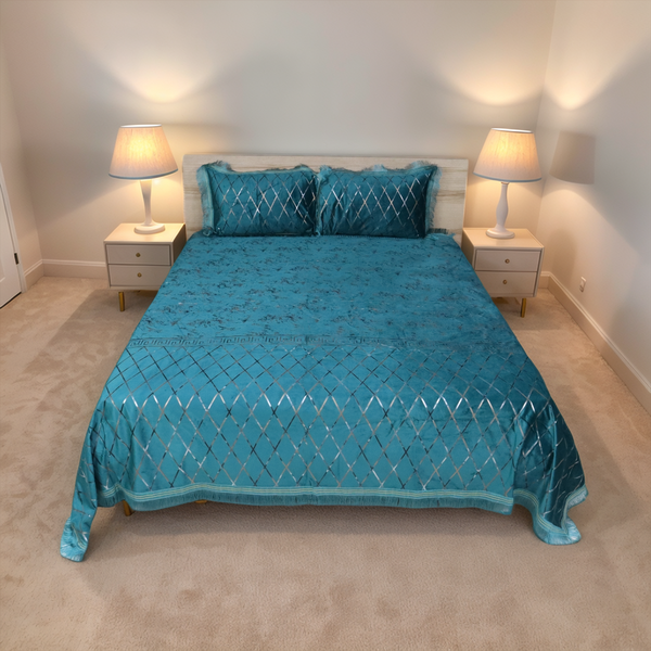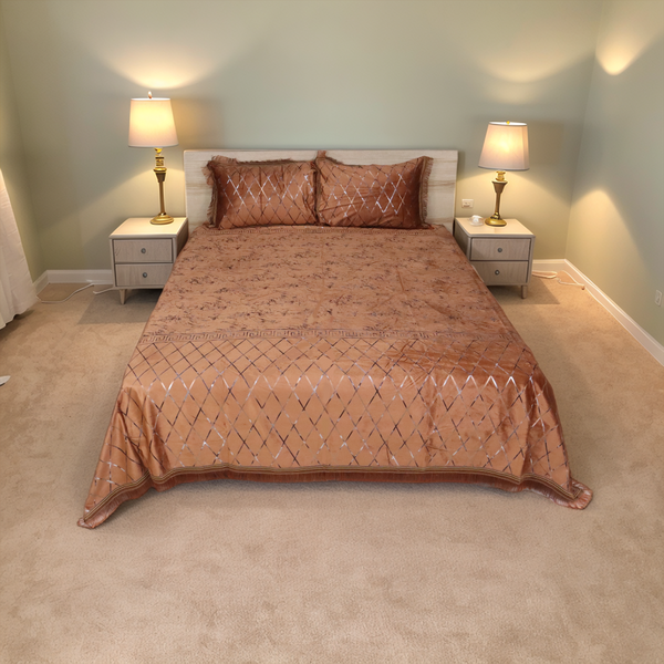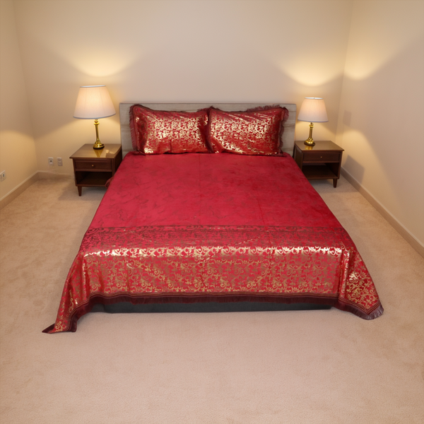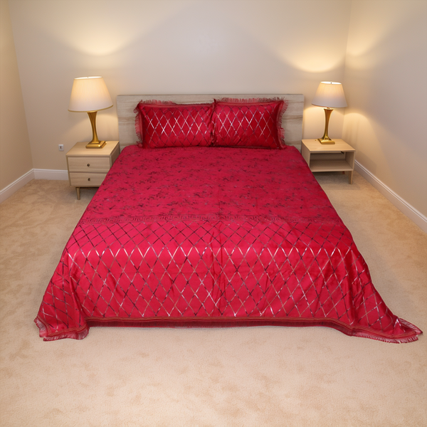 Ruby Silk 9 Pieces Embroidered Bed Set - Metallic Bliss