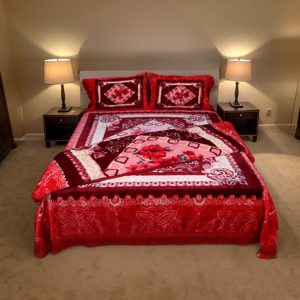 Ruby Silk 9 Pieces Embroidered Bed Set - Pearl Bliss