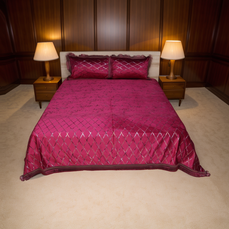 Feel the royalty. As the name suggests, Regal Decor instantly makes your room look elegantly decorative and makes your room look royal. A lavish bedsheet set made of Malai Palachi fabric...