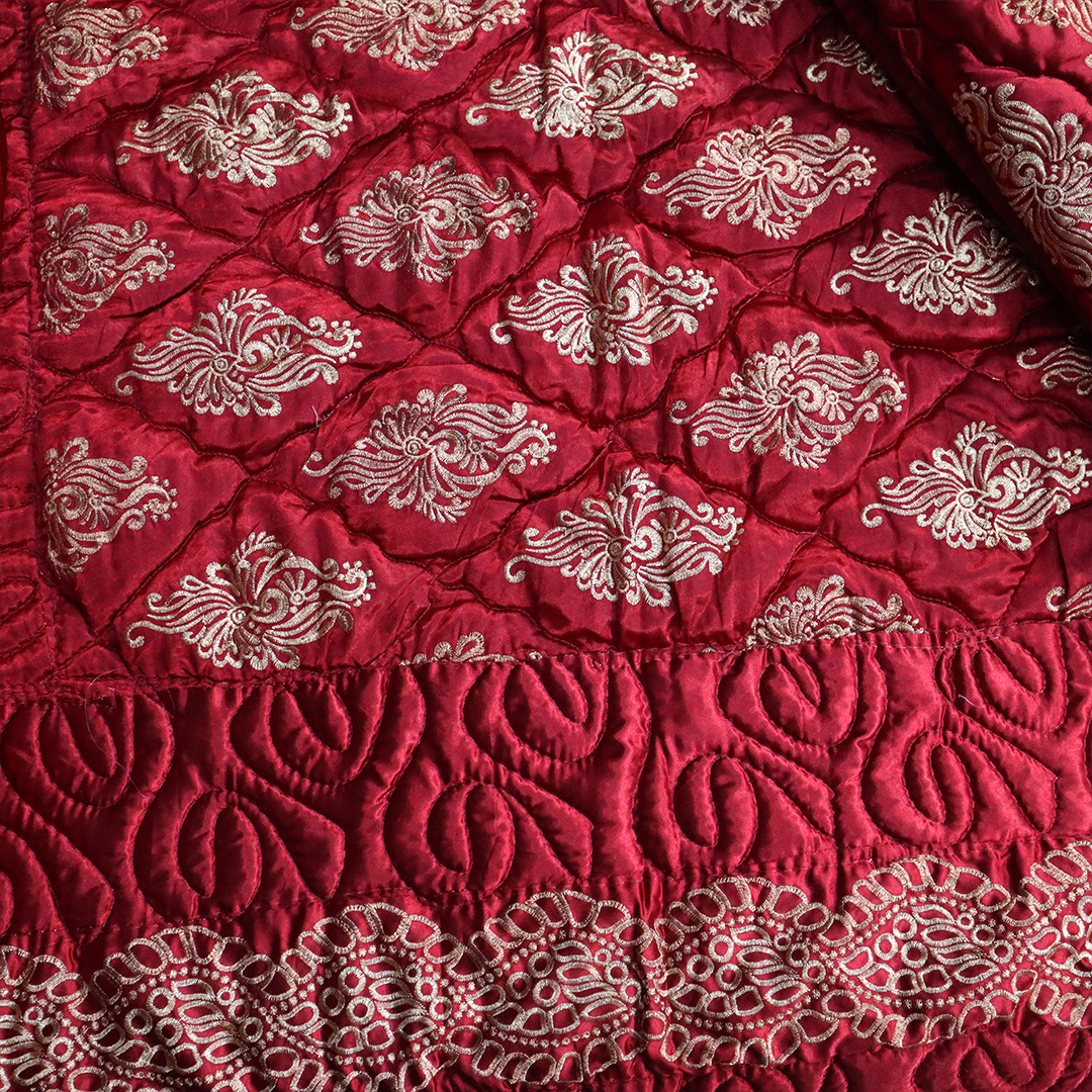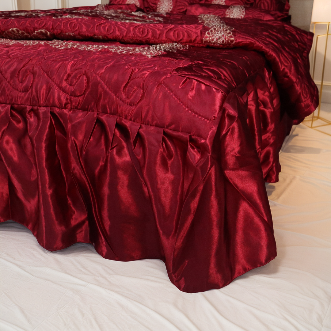 Rediscover the allure of your living space with our modern and luxurious Silk Collection, meticulously crafted to elevate your home interior to new heights of sophistication. Indulge in the epitome of elegance and finesse as our gorgeously designed quilted-looking bed set graces your room, adding a touch of opulence and charm. Immerse yourself in unparalleled comfort while enveloped in the soft embrace of our Silk Collection. Perfect for those seeking a bridal bed set that exudes both contemporary style and timeless luxury.